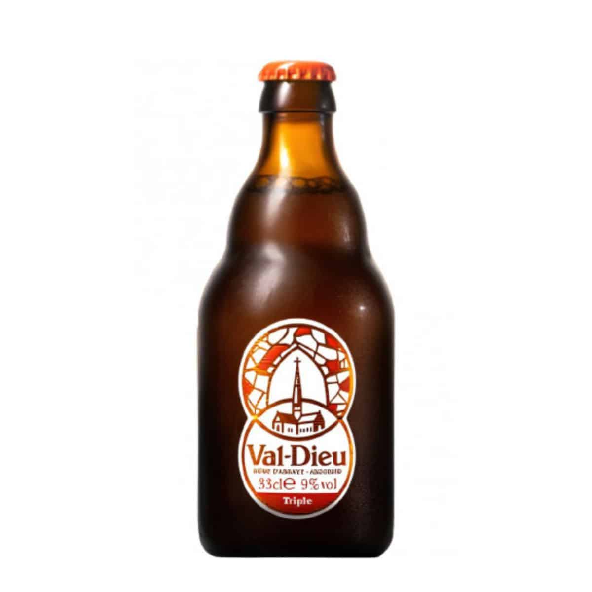 La Val Dieu Triple es una cerveza belga fuerte de 9% de alcohol, elaborada por la abadía cisterciense de Val-Dieu desde 1997. Se fabrica con malta de cebada, azúcar de caña y levadura de fermentación alta, con una segunda fermentación en botella para lograr una carbonatación natural y una textura suave y cremosa. Tiene un sabor intenso y complejo, con notas de frutas tropicales, cítricos, miel y especias, y un toque floral.